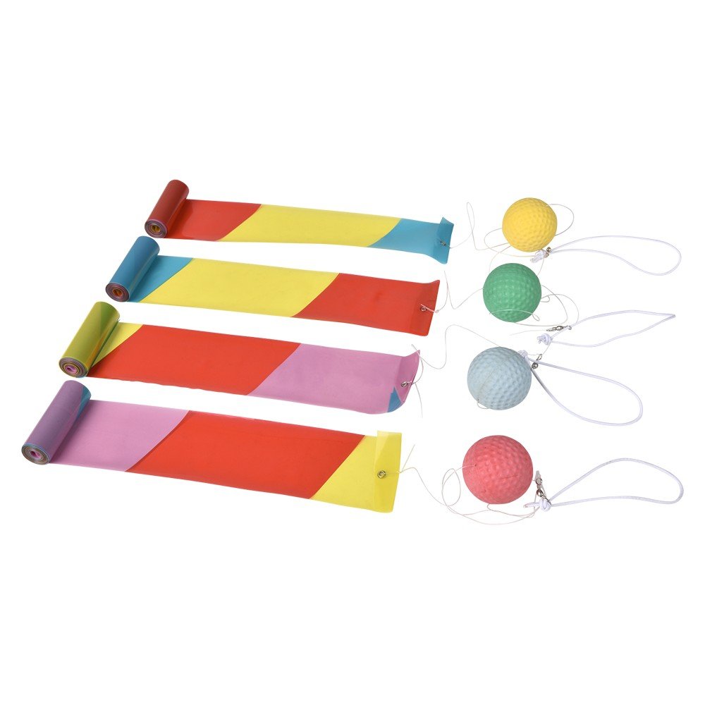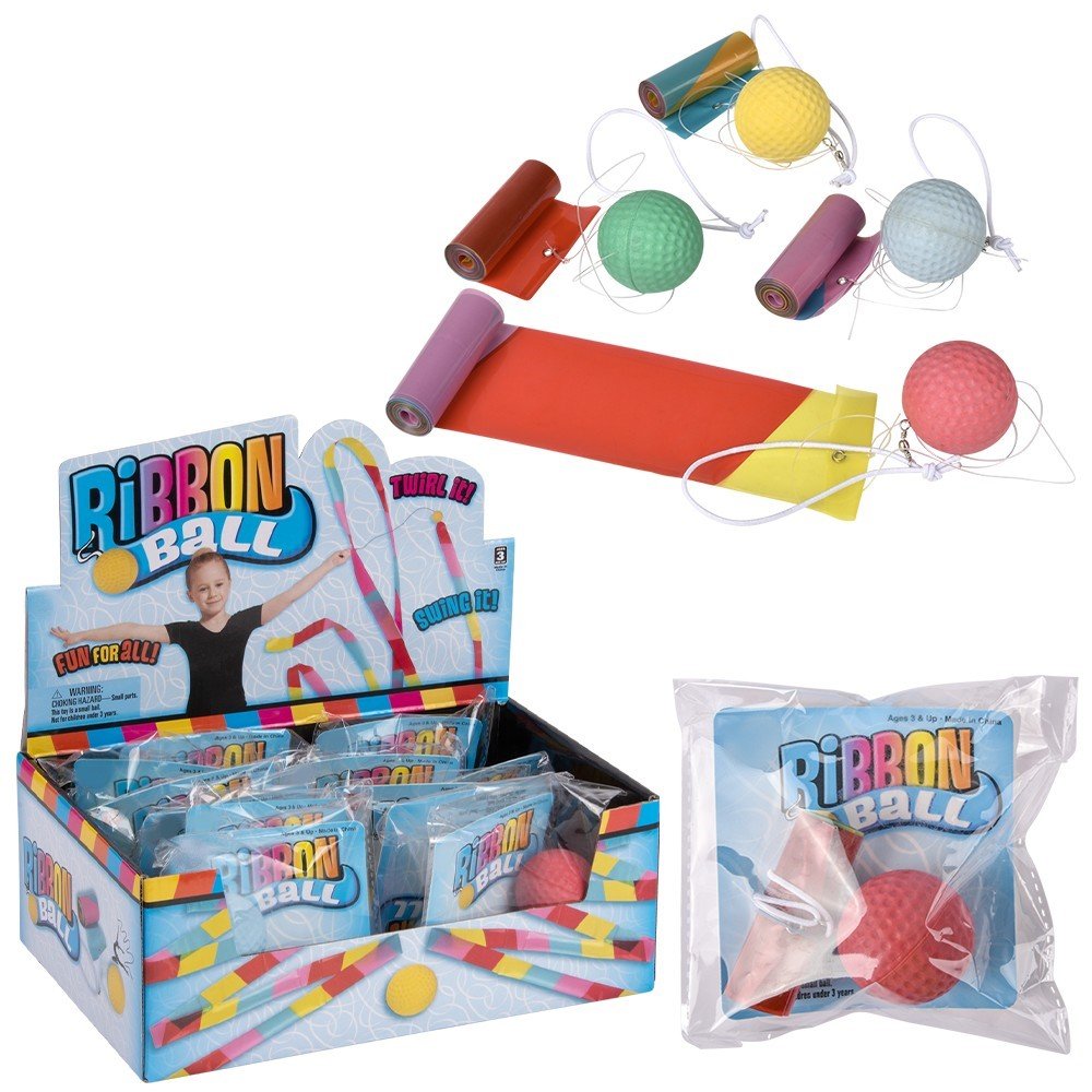 Twirl it, swing it, dive it up and down and in circles and watch the cool ribbon react in a variety of patterns and ways as it dances all around you. Hold the string loop or attach to your wrist. At the end of the string is a rubber ball and attached to the ball is the flowing ribbon. Ages 3+. Master Case is 192pcs. Sold in 16pc. counter displays assorted.