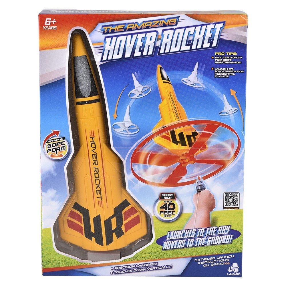 Get Outside and Play!! This cool Lanard Dense Foam Rocket flys up into the air with the pull of a string. Hold the Launcher handle in one hand, attach the rocket to the top, pull the string with the other hand while aiming it straight up and this Rocket will soar up to 40 feet into the air. Tilt it slightly while launching and you can achieve a horizontal flight path. As it descends it touches down vertically. Age 6+. Master Case 12pcs.