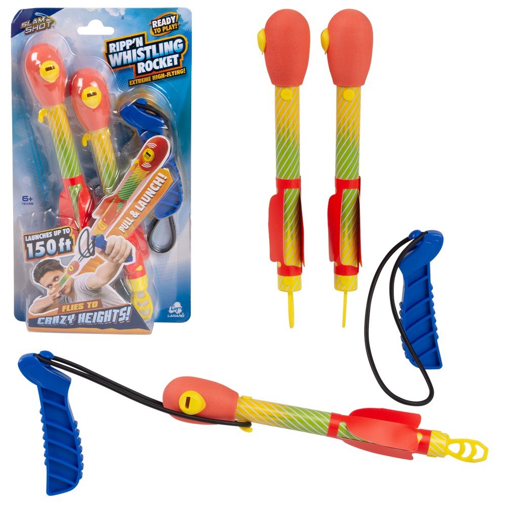 Get Outside and Play!! These Lanard “Ready to Play” Pull Back and Launch Foam Rockets are awesome! Launches up to around 150 feet in the air! They have a cool built in whistler in the nose that makes a “whistling” Noise as it flys up into the air. Each pack included 2 Rockets and one Launcher. Age 6+. Master Case 24pcs.