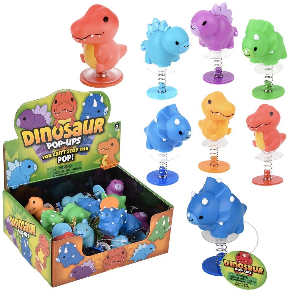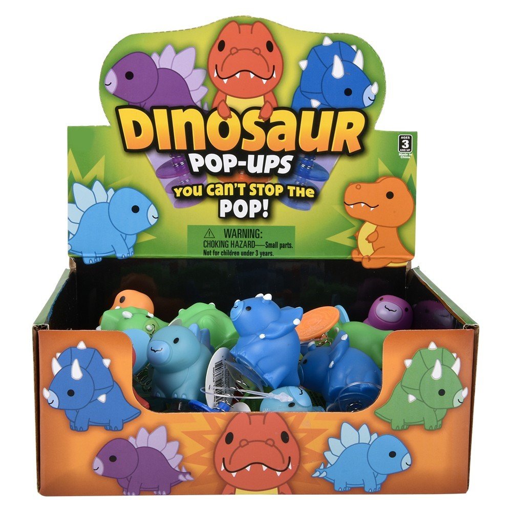 Don’t Stop….Don’t Stop The Pop!! Fun to play with these 2.75″ assorted Dinosaurs will jump high into the air. Just push them down and a suction cup secure the Dino to the base for a few seconds until it releases and “POP” up shoots the Dino into the air. Ages 3+. Master Case 288pcs.