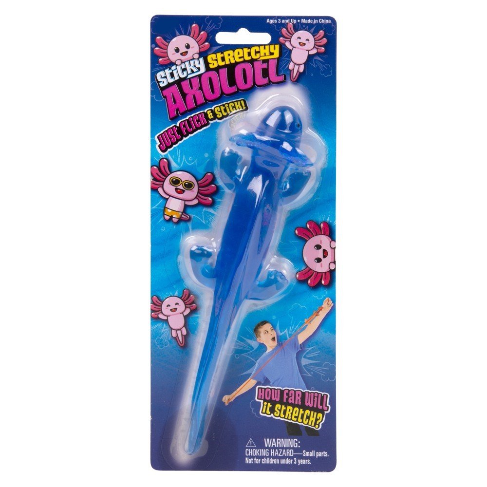You can Flick, and stretch these colourful 8″ long Axolotl’s easily up to 4′ or more….. Grab their tails and snap them…. They have a squishy sticky cool feel to them. Sold as assorted colours on a blister card. Age 3+. Master Case 144pcs.
