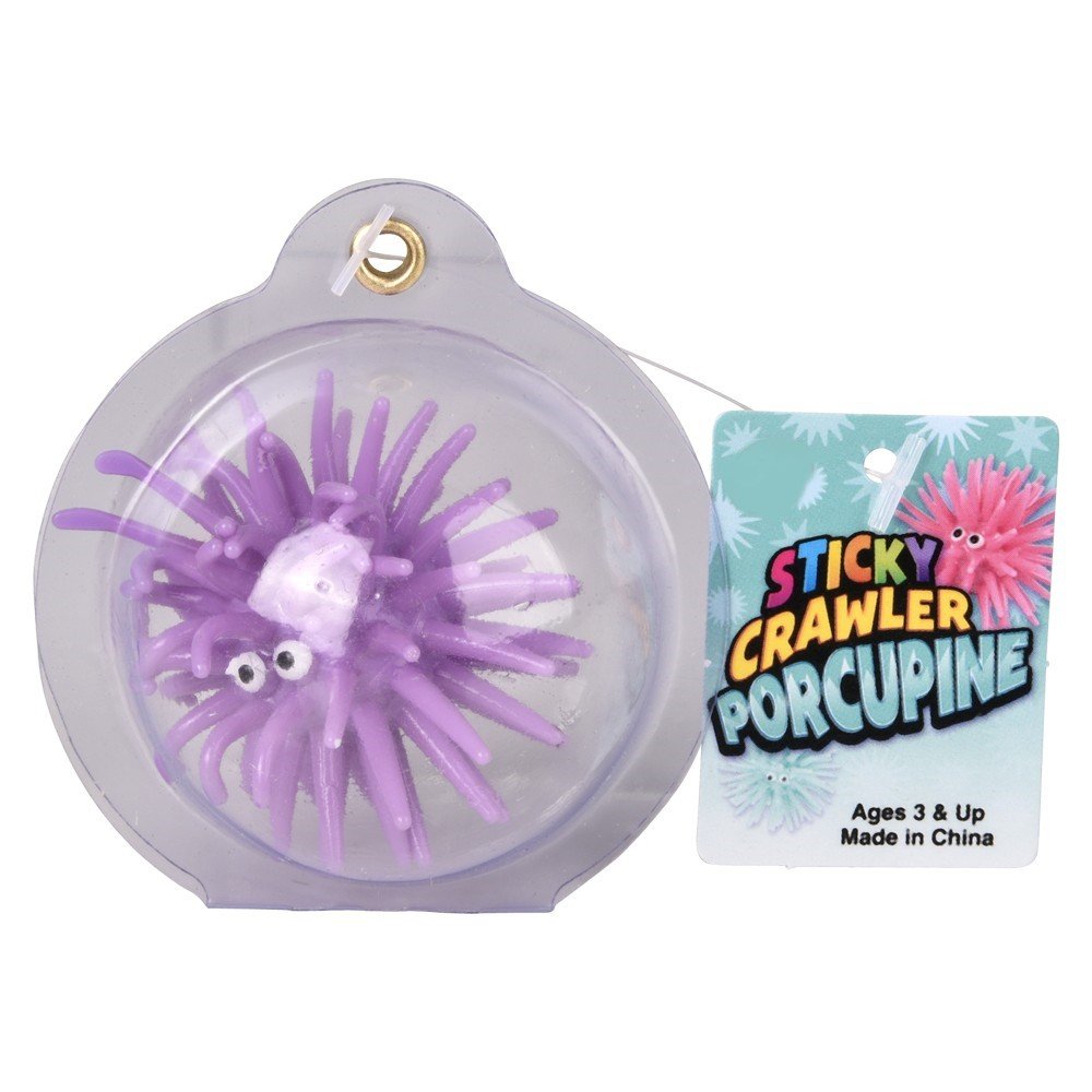 Weird and fun, these sticky Porcupine Balls with eyeballs are just plain fun to play with. Stretch and squeeze them and twirl them and as an added bonus, toss them at the wall or windows and watch them crawl their way down the wall or window. If they lose their stickiness, just rinse under warm water and away you go again. They are 1.5″ diameter and assorted colours. Age 3+. Master case 384pcs. Sold in displays of 24pcs.