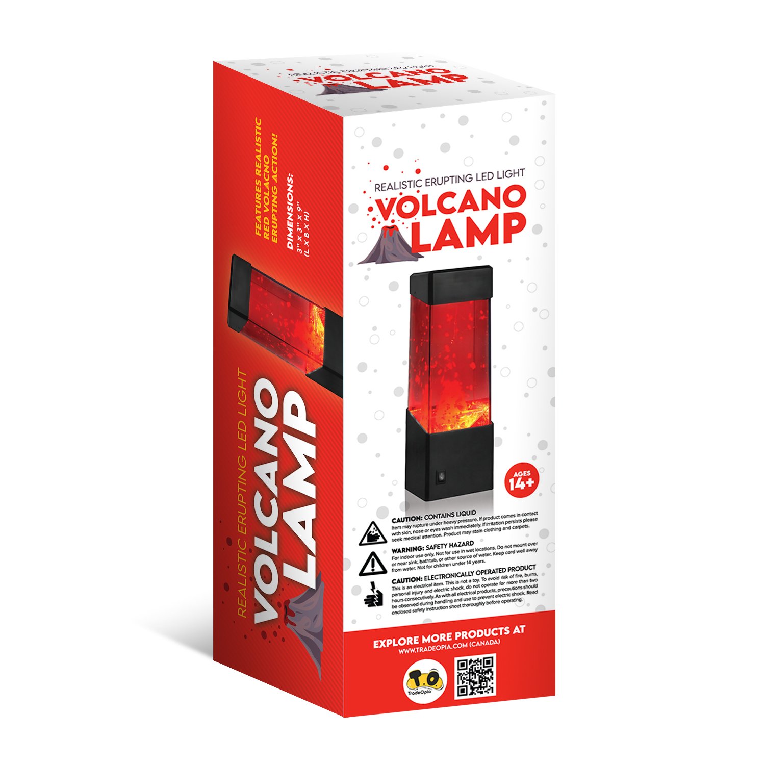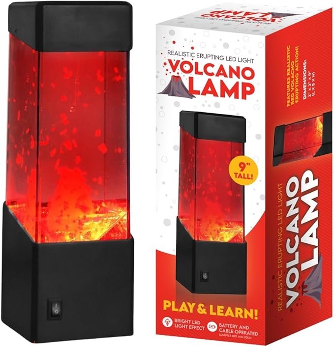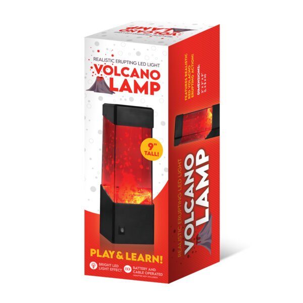 Volcano-Inspired Decorative LED Lamp: Experience the thrill of a mini volcanic eruption with this unique LED lava lamp, designed to mimic realistic bubbling lava using vivid red lighting — a fun twist on classic lava lamps and a standout piece for lighting lovers. Perfect for the bedroom, office, den or mancave. Stands 9″ tall. Powered by 3 AAA Batteries (not included) or a included USB Cable. Take your pick. In a fully illustrated retail box. For ages 3+. Master case is 12pcs.