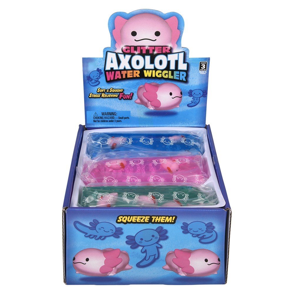 Sometimes called water snakes, these wrigglers are tricky and challenging to hold onto. Grab onto one and squeeze a bit and it tries to wriggle out of your hands…. See the cute Axolotls floating inside the wrigglers as you play with it. 5″ long. Age 3+. Master 48pcs.