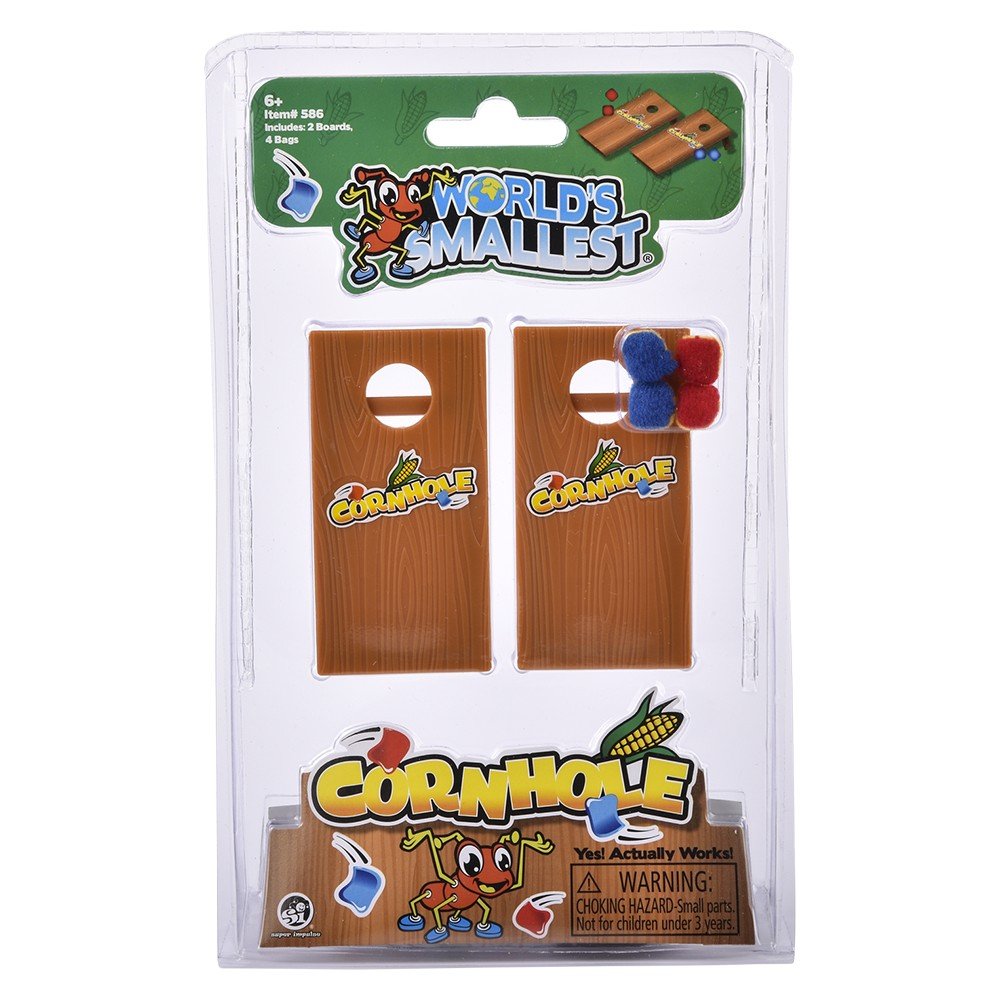 Yes it really works!! Get your game on with this World’s Smallest Cornhole Game. Tight for space? No worries this cornhole game has you covered. Includes 2 slope boards and 4 bags. Age 3+. Master Case 48pcs.